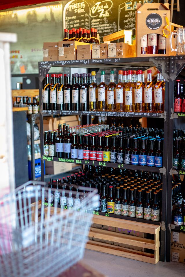 Le Chaudron vous propose dans chacun de ses établissements une cave (La botiga) où vous trouverez toute une gamme de boissons artisanales et locales disponibles à la vente à emporter.
